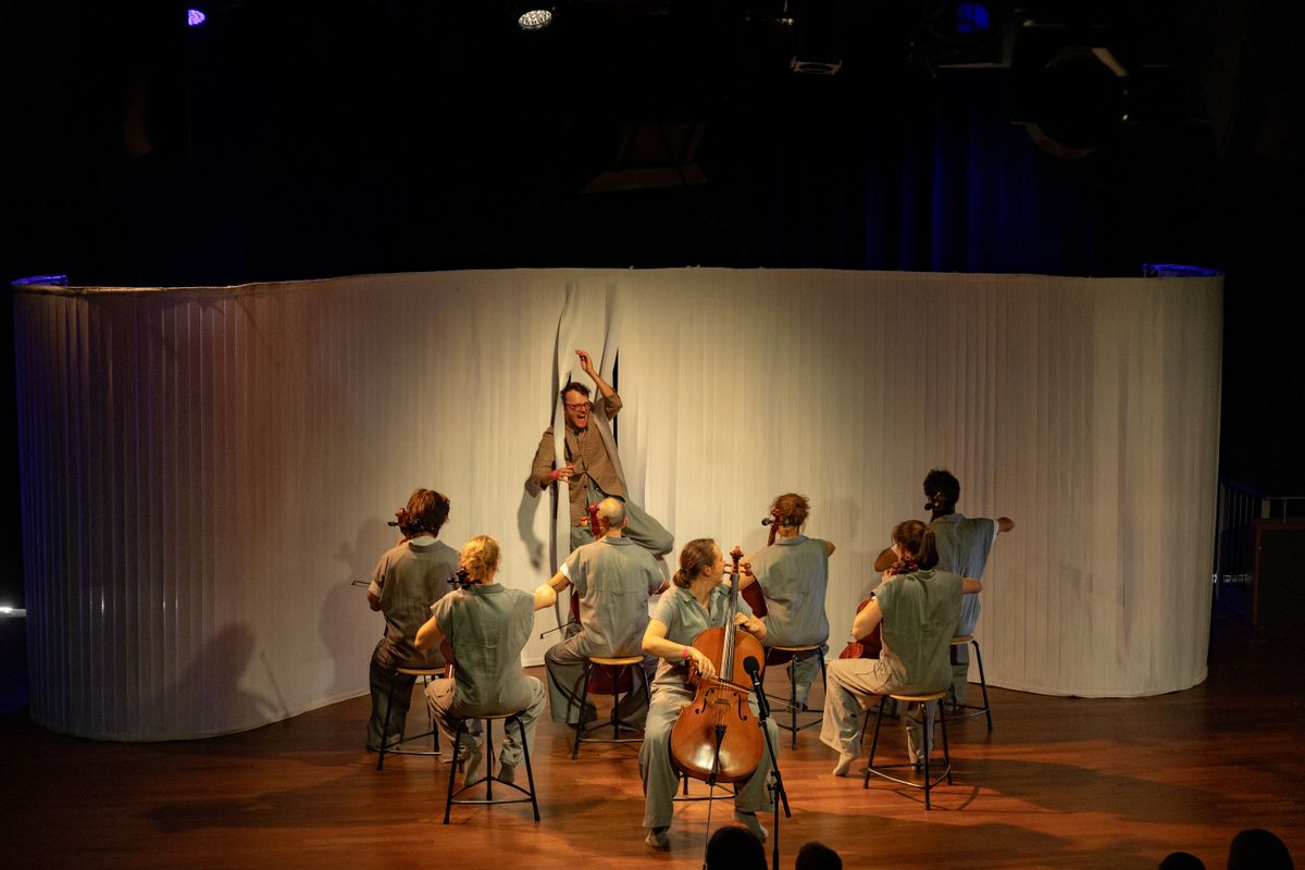Cellobende is een reeks muzikale, absurde situaties over de wondere wereld van volwassenen, gezien door de ogen van een kind.