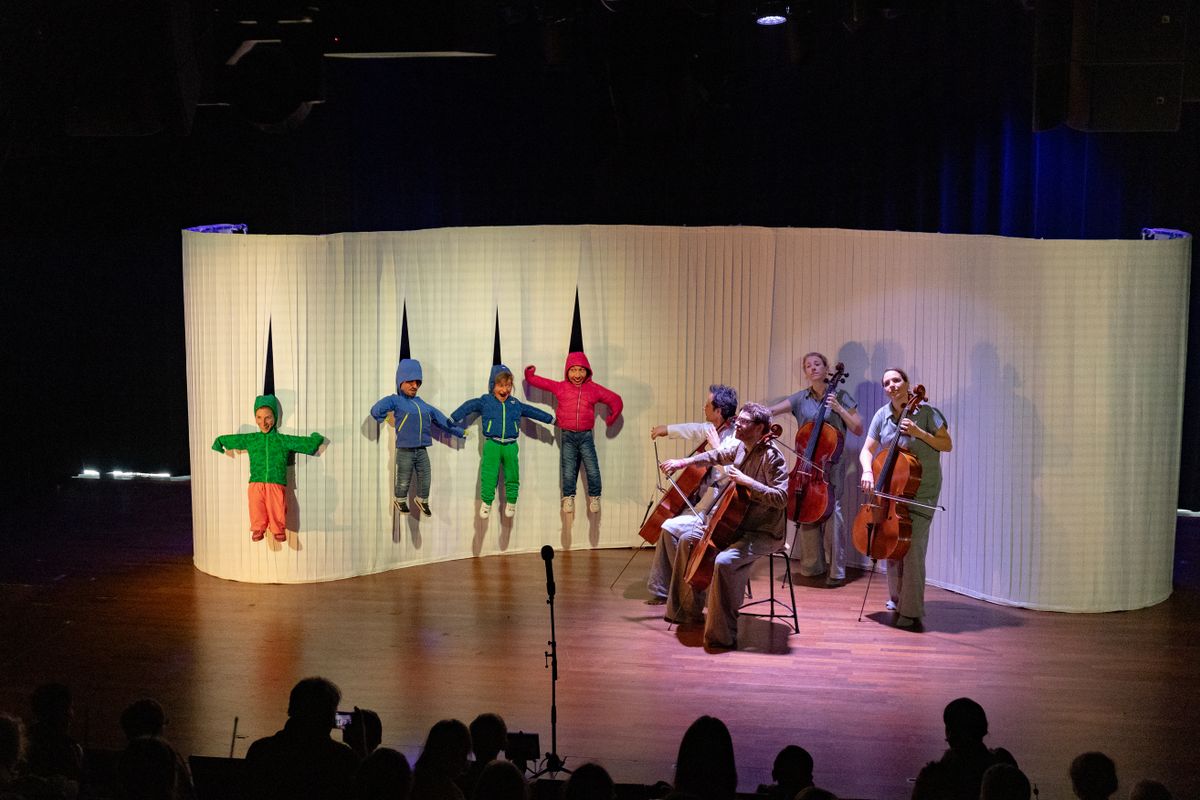 Cellobende is een reeks muzikale, absurde situaties over de wondere wereld van volwassenen, gezien door de ogen van een kind.