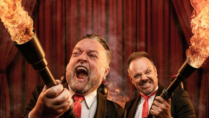 Een muzikale comedyshow vol energie en absurdisme, waarin persoonlijke problemen plaatsmaken voor pure entertainmentdrift.