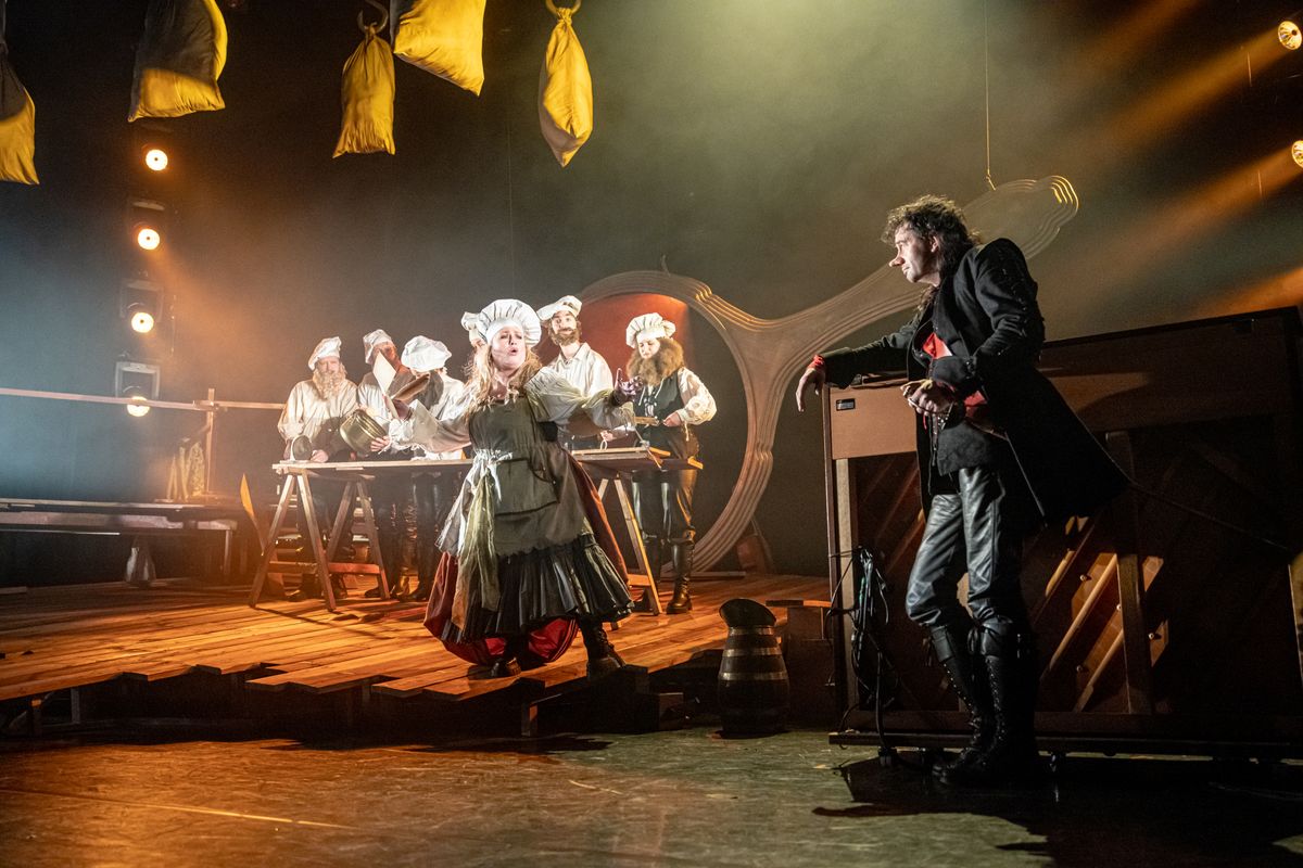 Doorgaand op de bekend-van-tour: Rein Hofman (o.a. Montfleury en Lignière) en Finn Poncin (De Guiche) waren eerder te bewonderen in hoofdrollen in de kerstvoorstelling Scrooge, een voorstelling waar ook Sem Konijn in te bewonderen viel. Een voorstelling die overigens ook een decor had van Joris van Veldhoven en werd geregisseerd door Jasper Verheugd, net als Cyrano. En om een sprong naar de nabije regionale toekomst te maken: Jibbe Willems, die deze geweldige tekst schreef, is ook verantwoordelijk voor de tekst van Door Het Stof, terwijl de muziek voor die voorstelling ook van de hand van Fons Merkies en Laurens Goedhart is.