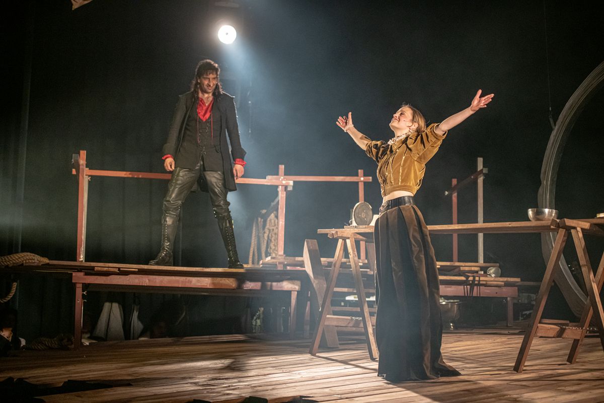 Nederland zal waarschijnlijk het enige land zijn waar men bij de titel Cyrano in eerste instantie aan de musical denkt: de Nederlandse voorstelling die zowaar Broadway haalde. Toch is Cyrano oorspronkelijk een toneelstuk, gebaseerd op een persoon die echt geleefd heeft en de basis was voor meerdere verfilmingen. Deze bewerking, die onlangs zijn eerste try-out speelde, is een nieuwe interpretatie van dit klassieke verhaal. Dit keer wordt “Onbeschrijflijk mooi” niet gezongen, al verdienen de vormgeving van bepaalde scènes – vooral in de tweede akte – deze omschrijving zeker. Om het nog wat ingewikkelder te maken: deze voorstelling is geen klassiek toneelstuk: er wordt gezongen, en de tienkoppige cast speelt zelf livemuziek.
