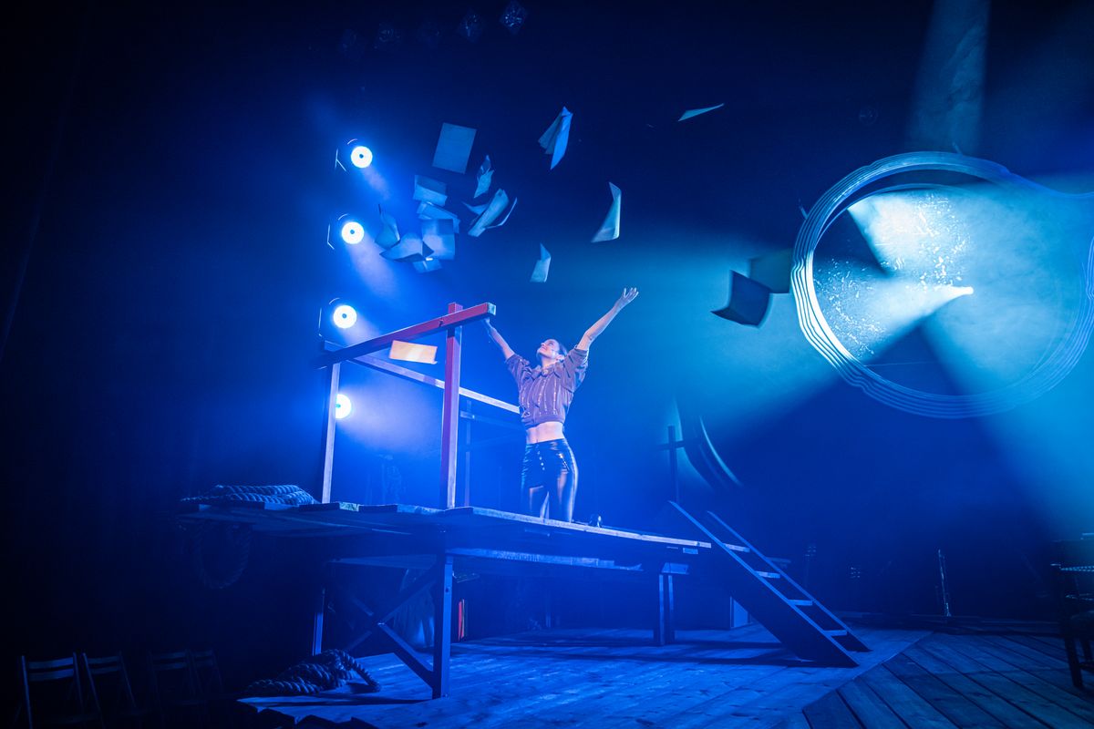 Als de zaaldeuren openen ziet het publiek de cast nog bezig met voorbereidingen: houten klapstoelen worden geplaatst, gesprekken worden gevoerd en er worden stemoefeningen gedaan. Voordat het verhaal begint wordt gesproken over het mooiste moment voor de cast: als het publiek binnendruppelt. Ook wordt het aankleden voor een voorstelling gewaardeerd. De manier waarop er gesproken wordt, laat je wennen aan de poëtische toon van de voorstelling, en door een stuk a-capella zang ook aan muzikale intermezzo’s, die de voorstelling kent. Op het podium staat een eenvoudig houten decor met in het midden een piano, die zich al snel ontpopt tot een spookpiano. Dit is het enige instrument dat automatisch geluid maakt; de cast bespeelt zelf onder andere gitaren en trompetten. Er worden zelfs enkele verrassende blaasinstrumenten ingezet. Alsof acteren en musiceren nog niet genoeg is, nemen de spelers ook decorwissels en belichting voor hun rekening.