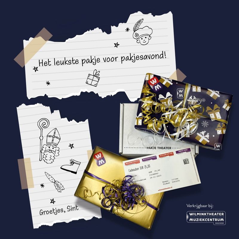 Ben jij op zoek naar een leuk en origineel cadeau voor Sinterklaas? Wat dacht je van een avondje theater? Verras je partner, ouders, broers of zussen met een cadeaubon van het Wilminktheater en steel de show tijdens pakjesavond. Van comedy tot musical en muziek, de ontvanger bepaalt zelf waar hij de cadeaubon aan besteedt.