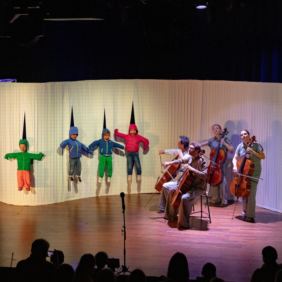 Cellobende is een reeks muzikale, absurde situaties over de wondere wereld van volwassenen, gezien door de ogen van een kind.
