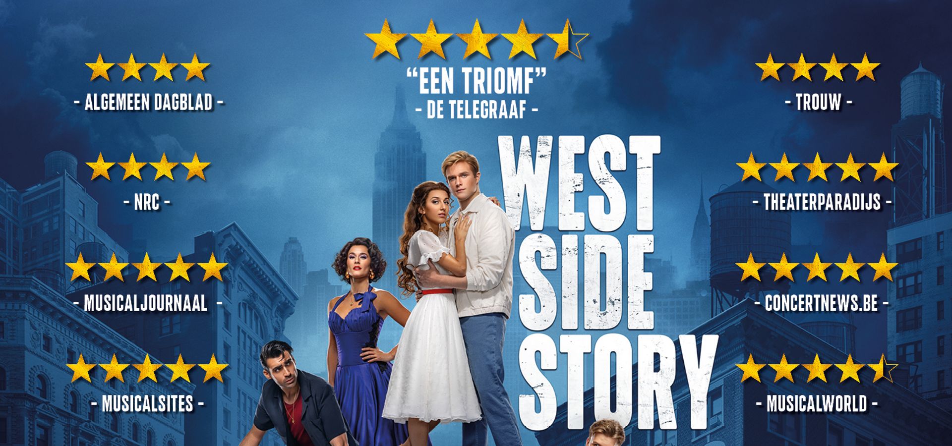 Ontdek wat de recensies zeggen over West Side Story, de iconische musical met een hartverscheurend verhaal over een onmogelijke liefde die opbloeit tijdens een bendeoorlog in de straten van New York. Deze recensies maken duidelijk waarom deze ontroerende voorstelling een 'must see' is!