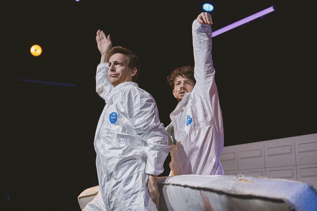 De Jager: “Ik denk dat je onze stijl het beste kunt omschrijven als fysiek absurdistisch cabaret. En dan mis ik wel het visuele en het muzikale in de omschrijving en misschien ook nog wel theater, maar we willen wegblijven van nog meer een niche-categorie te zijn. We zien dat dan gewoon als extraatjes, die het publiek ook krijgt.”