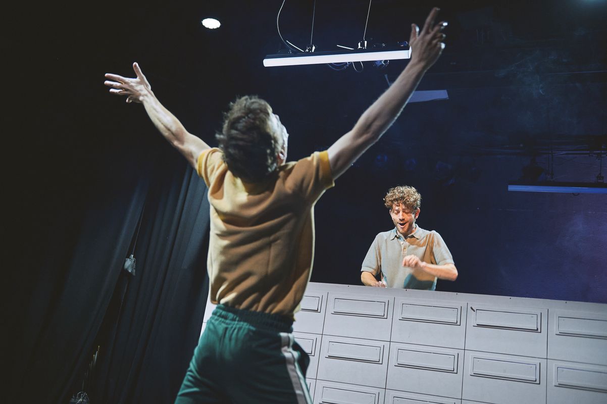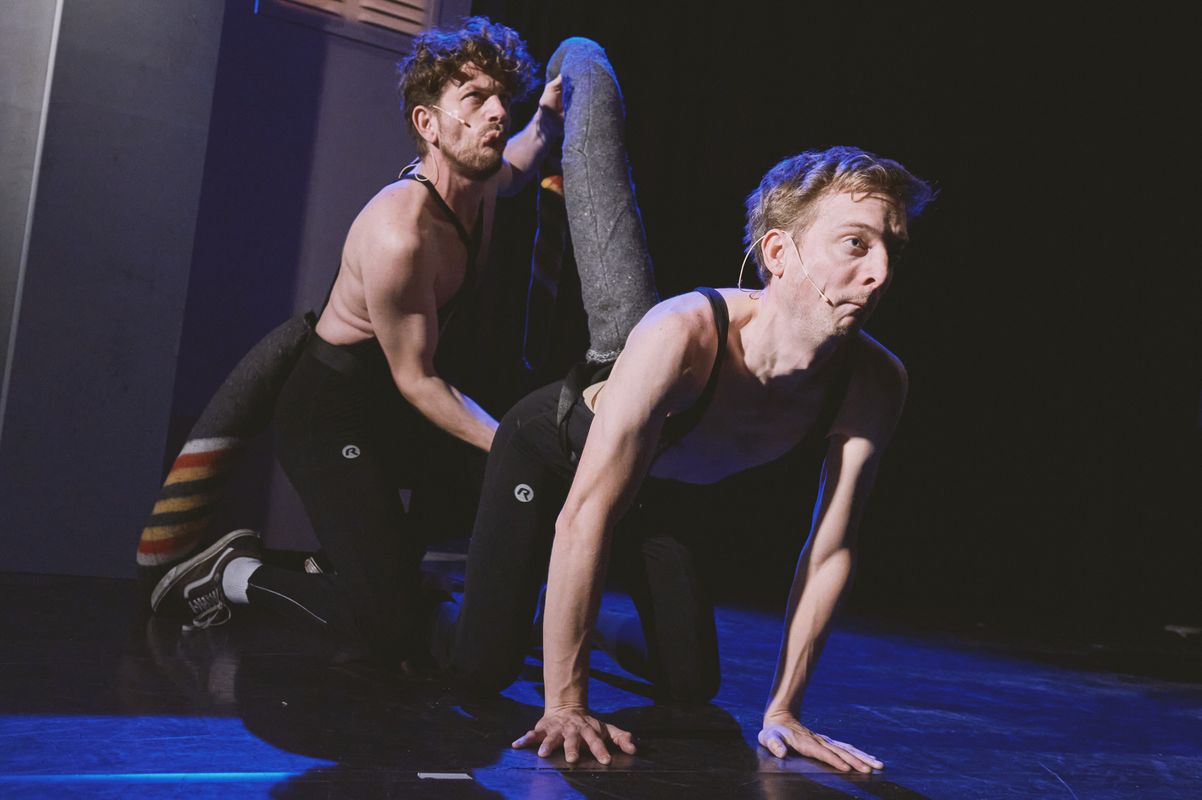 Joosen: “Het is alleen tekst en ergens vind ik dat gewoon zonde. We vinden het mooi om alles, licht, geluid, decor, rekwisieten, ons lijf te benutten. Om van niets toch iets te maken, door het tot in het absurde door te trekken.”