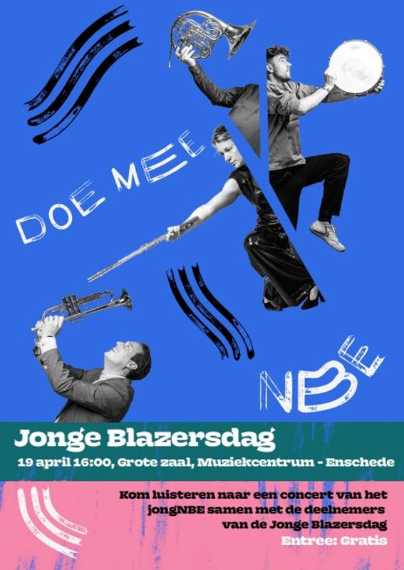 Bespeel jij al minimaal één jaar een blaasinstrument, contrabas of percussie en ben jij niet ouder dan 20 jaar oud? Dan is de Jonge Blazersdag iets voor jou. Tijdens deze dag werk je samen met andere muzikanten, het jongNBE en een lid van het Nederlands Blazers Ensemble aan drie stukken die je aan het eind van de middag ook gaat spelen op het concert met het jongNBE.