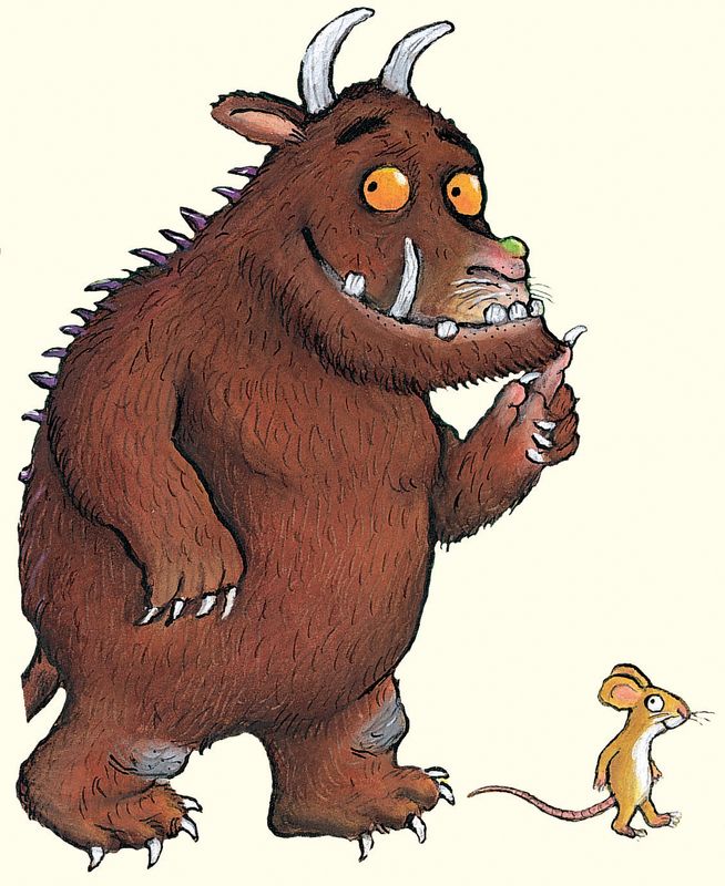 Hij heeft oranje ogen, een tong zwart als drop en paarse stekels van zijn rug tot op zijn kop. Wie kent hem niet? De Gruffalo!