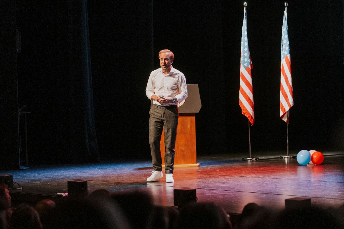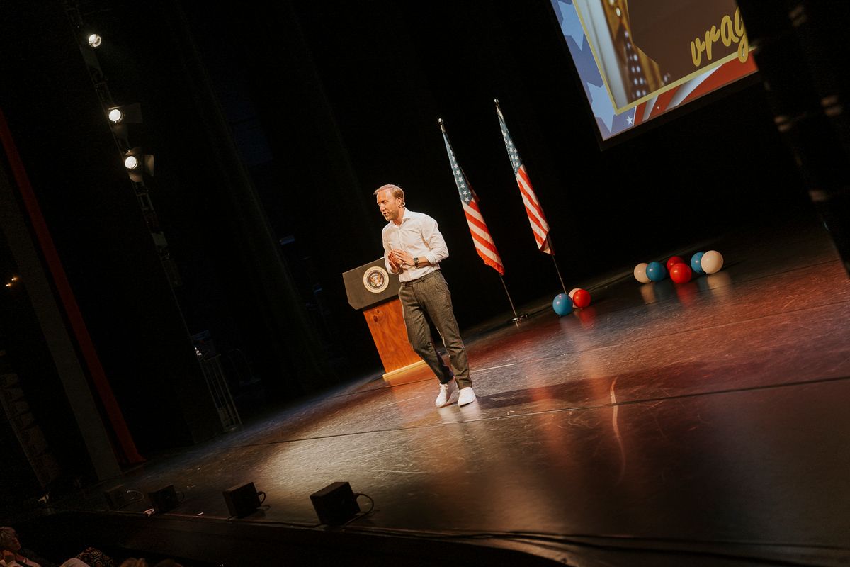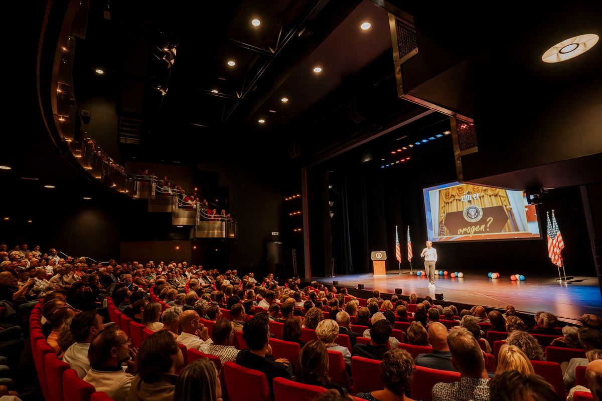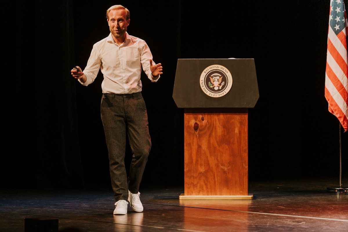 Het theatercollege van Raymond Mens is een leuke, interactieve, audiovisuele voorstelling met veel (tv)beelden van speeches, debatten, bijeenkomsten en bizarre gebeurtenissen uit de Amerikaanse politiek. Zijn vorige theatercollege ‘Lange Leve Amerika’ trok ruim 17.000 bezoekers en werd lovend ontvangen.