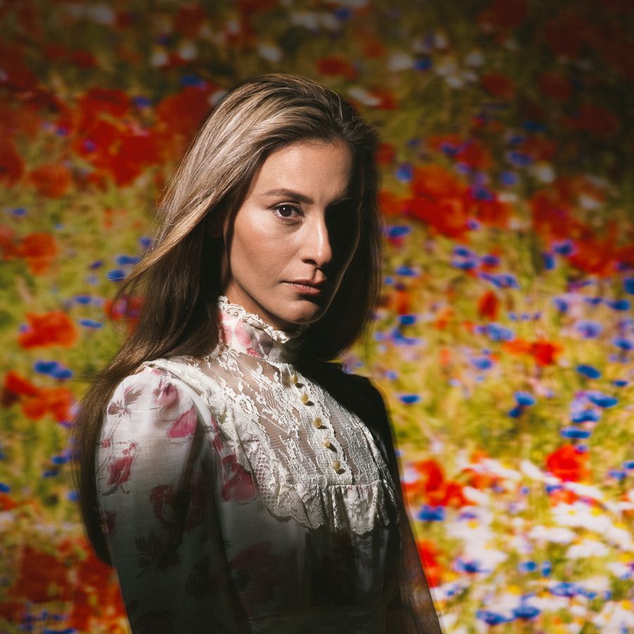 Op de foto draagt Yurdakul een jurk met hoge kraag en borduurwerk als verwijzing naar haar oma’s, de vrouwen die centraal staan in haar nieuwste voorstelling De stille vrouw. Als jonge Turkse bruiden volgden zij hun mannen naar Nederland, die vanaf de jaren 60 het zware werk opknapten in fabrieken. Hoe zij naar hun leven kijken en hoe hun ervaringen doorwerken in het hare, dat wilde Yurdakul ontrafelen.
