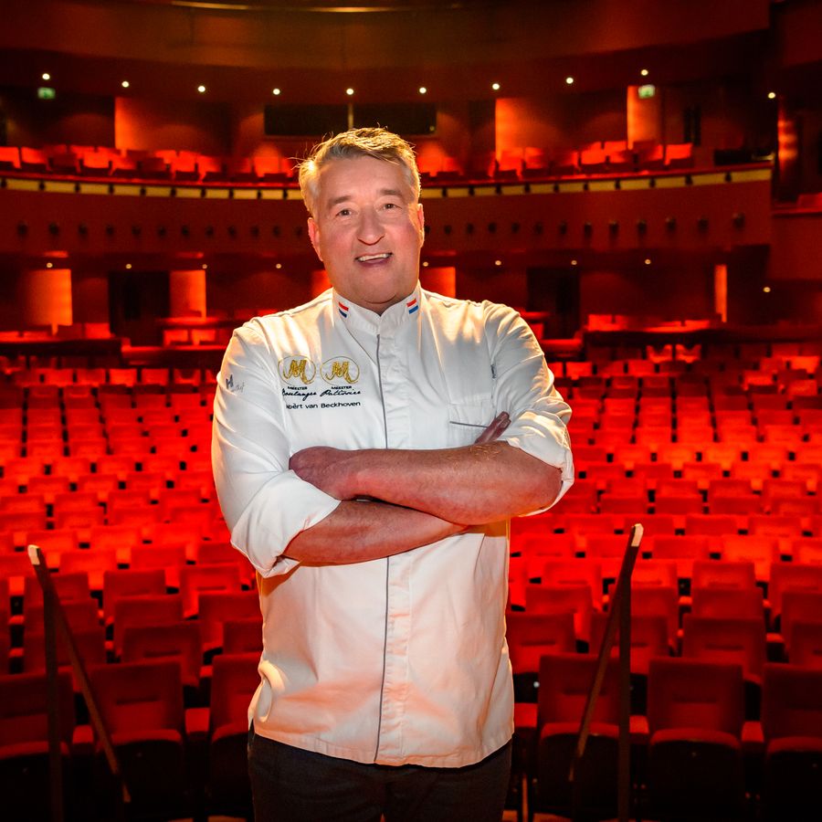 Hoewel de meesterbakker het liefst met zijn handen bezig is, voelt hij zich inmiddels ook thuis in het theater. „Natuurlijk ligt het wel aan het publiek. Als iedereen een beetje halfdood zit te kijken, wordt het niets. Maar als het publiek leuk meedoet, voel ik me als een vis in het water. Bakken is ook beleving, en juist in het theater voel je dat meer dan ooit.”