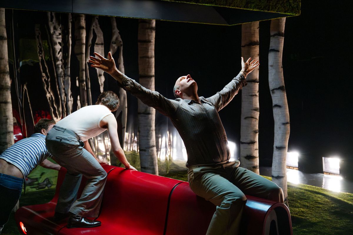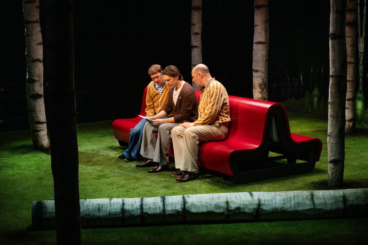 Ja, ik dacht: één acteur speelt de oude Ted, een ander de jonge en een derde alle ‘randfiguren’. Maar toen realiseerde ik me dat het theatraal sterker zou werken als ze alle drie Ted zijn in alle leeftijden, en dat steeds afwisselen.