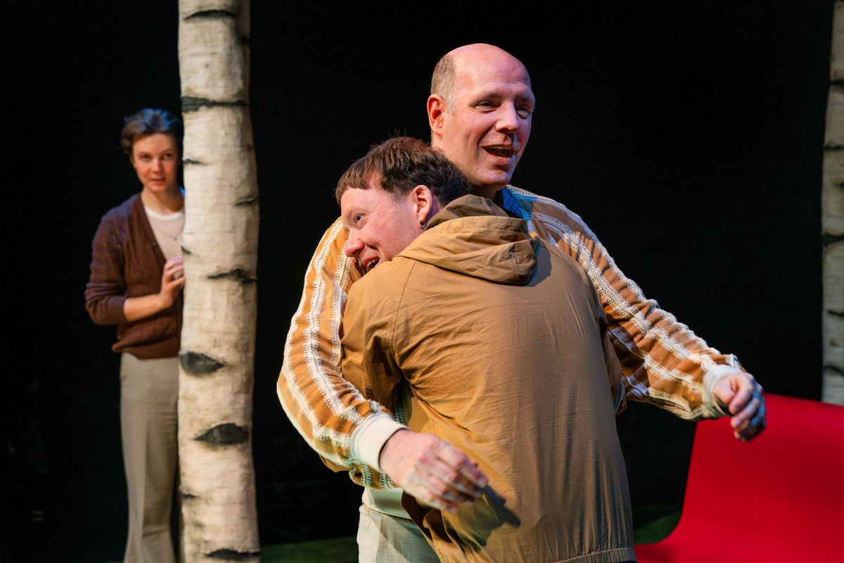 Ted wordt verscheurd door tegenstrijdige gevoelens. Hij vindt wat hem overkomt vervelend én spannend. Hij zoekt het op én wil ervan wegrennen. Die tegenstrijdigheden wilde ik letterlijk verschillende stemmen geven. Soms is het heel liefdevol als die drie Teds samen spreken, bijna alsof ze ’s avonds in de kroeg wel even alle problemen van de wereld oplossen. Maar zodra de stemmen elkaar bevechten, zie je juist de eenzaamheid van iemand die continu met zichzelf in discussie is.