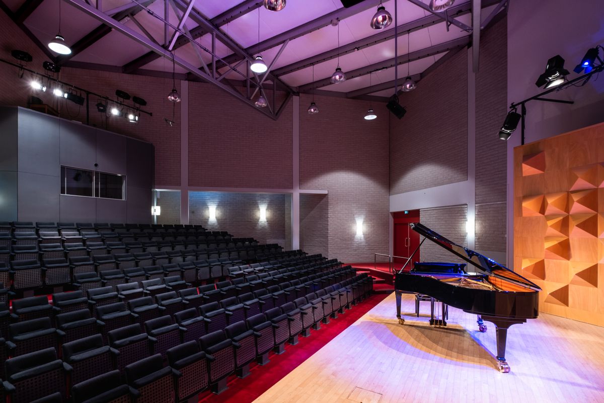 De Kleine Zaal van het Muziekcentrum combineert intimiteit met professionaliteit. Deze veelzijdige ruimte voor maximaal 200 personen biedt een warme, uitnodigende sfeer en uitstekende akoestiek, ideaal voor zakelijke bijeenkomsten waarbij persoonlijke interactie centraal staat.