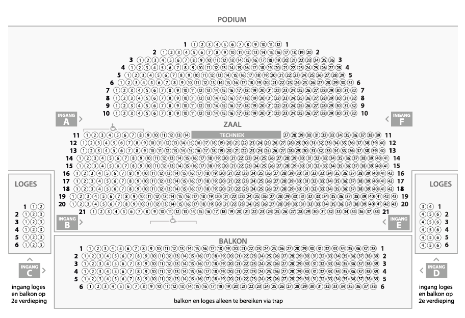 Met ruim 1001 zitplaatsen, comfortabele stoelen en een sfeervolle theateropstelling is de PAY. Zaal gemaakt voor een avond uit die indruk maakt. De zaal heeft een begane grond, balkon en loges, waarbij elke plek goed zicht biedt op het podium.