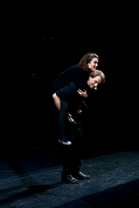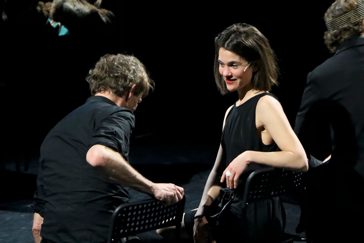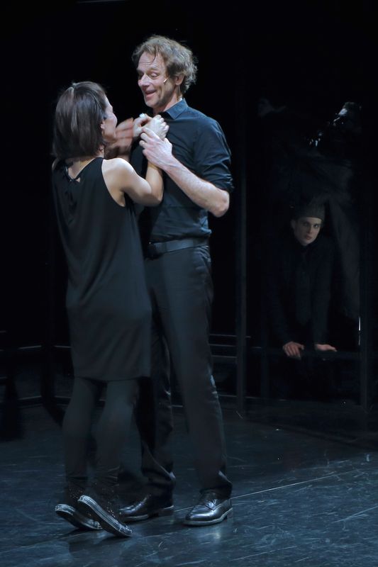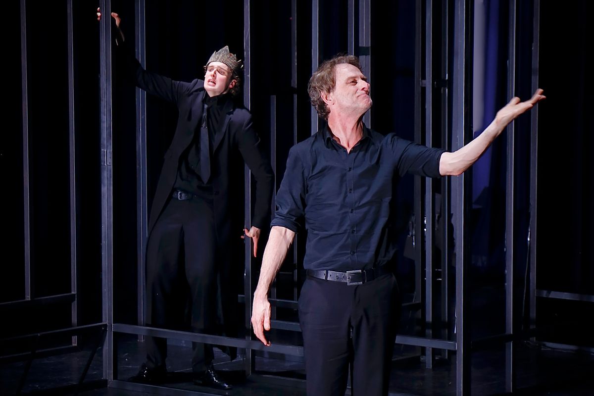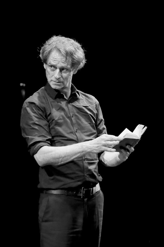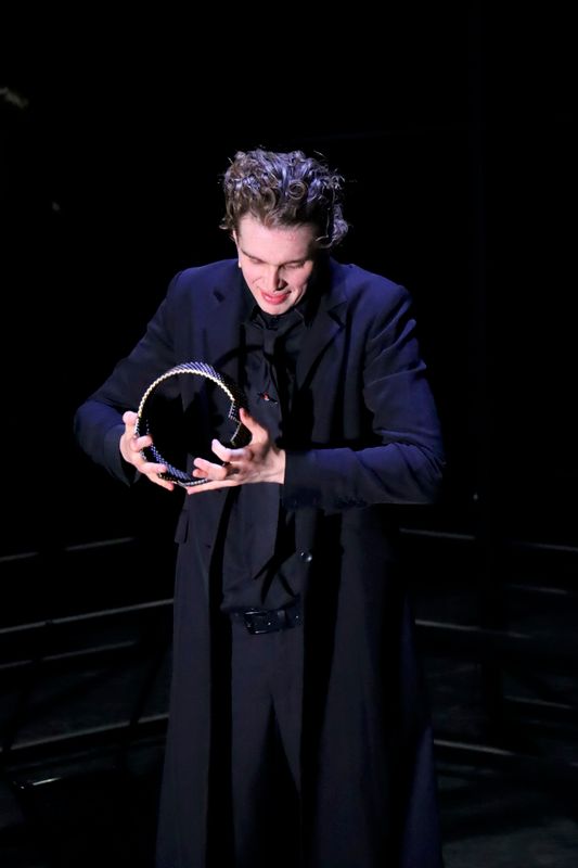 Juliën Croiset heb ik al gecomplimenteerd, maar ook de andere tien acteurs zijn goed. Veel van hen spelen dubbelrollen, wat volstrekt helder is. Eén grote acteur is niet in beeld. Van maestro Hans Croiset (89) is alleen de stem te horen als de geest van Hamlets vader. Heel sterk. Marguerite de Brauw – een vaste kracht bij Studio Antigone – speelt mooi een wanhopige Gertrude, de moeder van Hamlet. Scott Reniers, die jonger oogt dan Hamlet zelf, speelt geraffineerd de doortrapte Claudius, die Hamlets vader vermoordde en met diens weduwe – Hamlets moeder – trouwde. Lidewij Mahler is ontroerend als Ophelia, het meisje dat ernstig in de war raakt en gek wordt vanwege Hamlets gedrag en haar vaders dood. Een speciaal compliment gaat uit naar Thijs Prein, die eerst de breedsprakerige Polonius speelt en daarna amusant de doodgraver neerzet.
